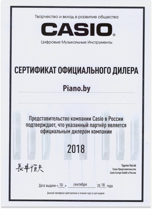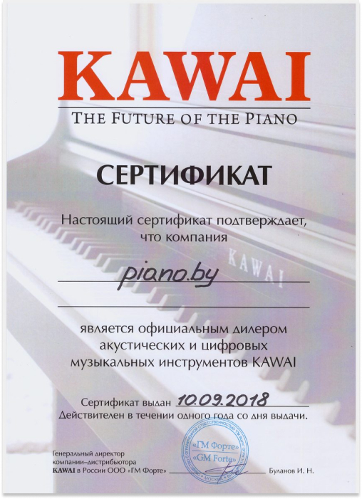 Данными сертификатами показываем, что являемся официальными партнерами мировых "клавишных" брендов.